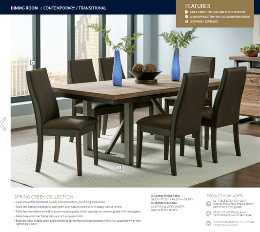 Spring Creek Rich Cocoa Dining Set (table and 6 chairs) by Coaster