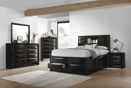 Queen Jessica Cappuccino LED Bookcase Bed Frame by Coaster