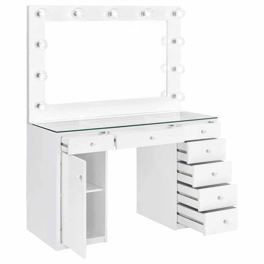 Acena White 7-Drawer Vanity with Lighting by Coaster