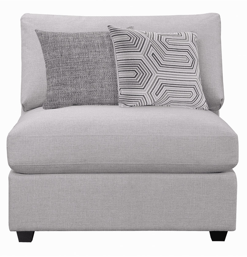 With a simple silhouette, this modern armless chair showcases contemporary design. Great for a neutral or colorful space, the light grey fabric upholstery complements a variety of décor schemes. The modular design allows for a customizable sofa or sectional, ideal for hosts and families. Clean and elongated, the lines on the seat and back cushions mirror each other for an updated feel. Sink into the plush cushioning on a family movie night or game night.