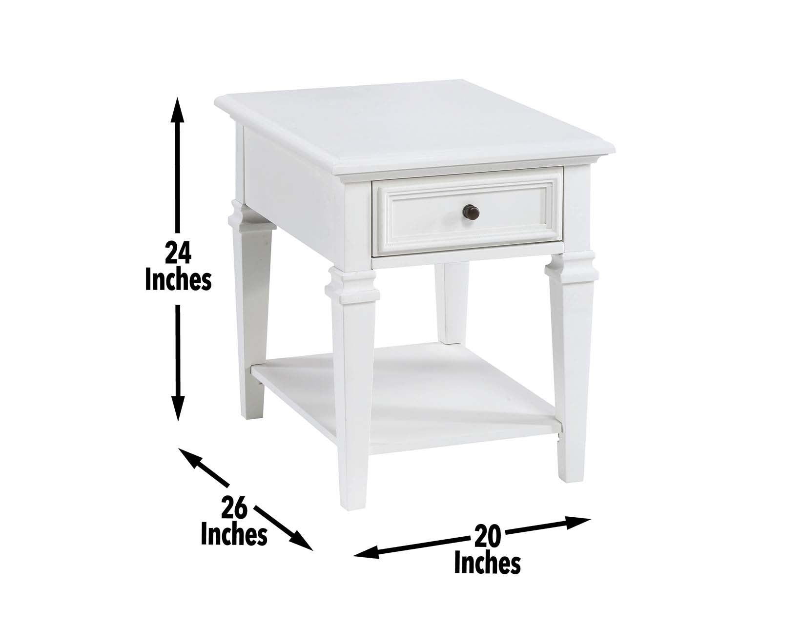 Modern farmhouse design in a compact design that fits comfortably beside a chair or as a companion piece to a Sofa and Loveseat. This Charlestown table combines contemporary and cottage elements with a soft ogee edge plus angular leg treatment to produce a transitional table that will fit almost anywhere. A clean, crisp white finish adds a fresh, neutral look to this versatile table.