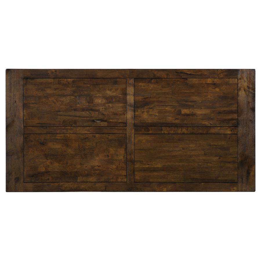 Rustic golden brown finish adds country character with a reclaimed wood feel