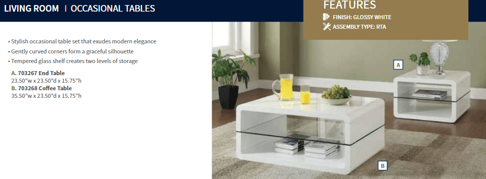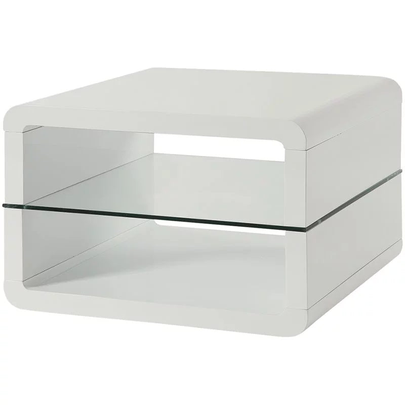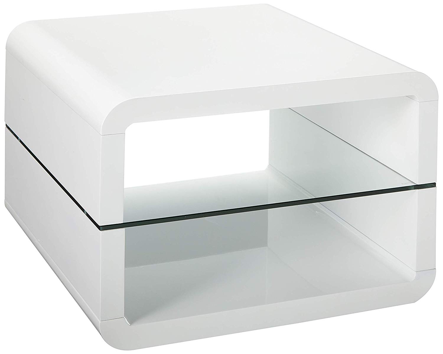 Amplify your décor with an ultra-modern edge. The funky design of this end table makes a striking statement in a living room or den. Its intriguing, cube-shaped frame is finished in glossy white for a dazzling hint of shine. A clear, tempered glass shelf cuts through its center, adding a third level of storage while enhancing its chic, updated style. Ideal for a home with contemporary décor, this trendy table truly stands out.