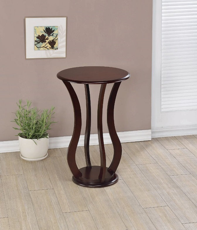 Graceful curves form an enticing silhouette that infuses charm and romance. This plant stand brings a fresh look to traditional and transitional spaces. With a lovely espresso finish, its cherry wood composition is bold and dynamic. Top with a large potted plant or décor accent, and double up with a smaller pot on its bottom storage shelf. This plant stand creates an artful elegance in any bedroom or living room.