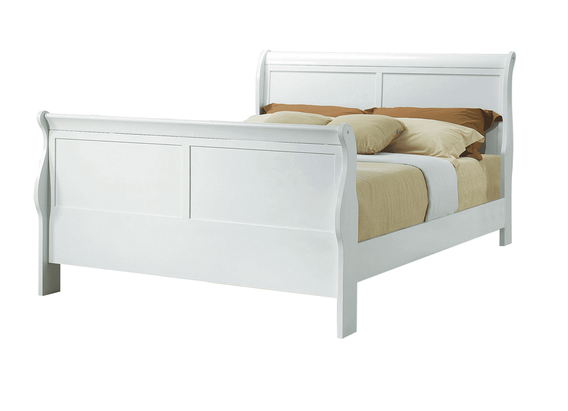 Build a soothing bedroom retreat around the understated style of this transitional wooden bed. In a cool white finish, it sets a versatile, neutral tone, offering a lovely complement to surrounding decor and the linens of your choice. The headboard is a panel style with curvy details on each side, creating a sense of flow and movement. The curvy accent is continued in the footboard, offering eye-catching appeal in any bedroom. The bed includes support rails and center legs with levelers and does require a foundation for use.