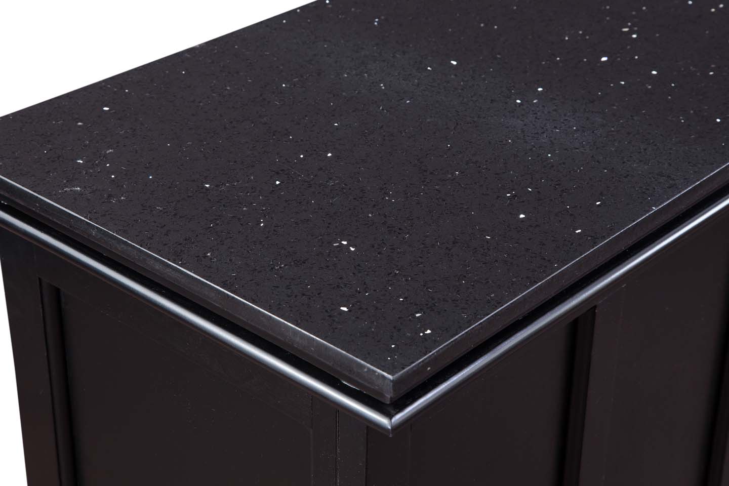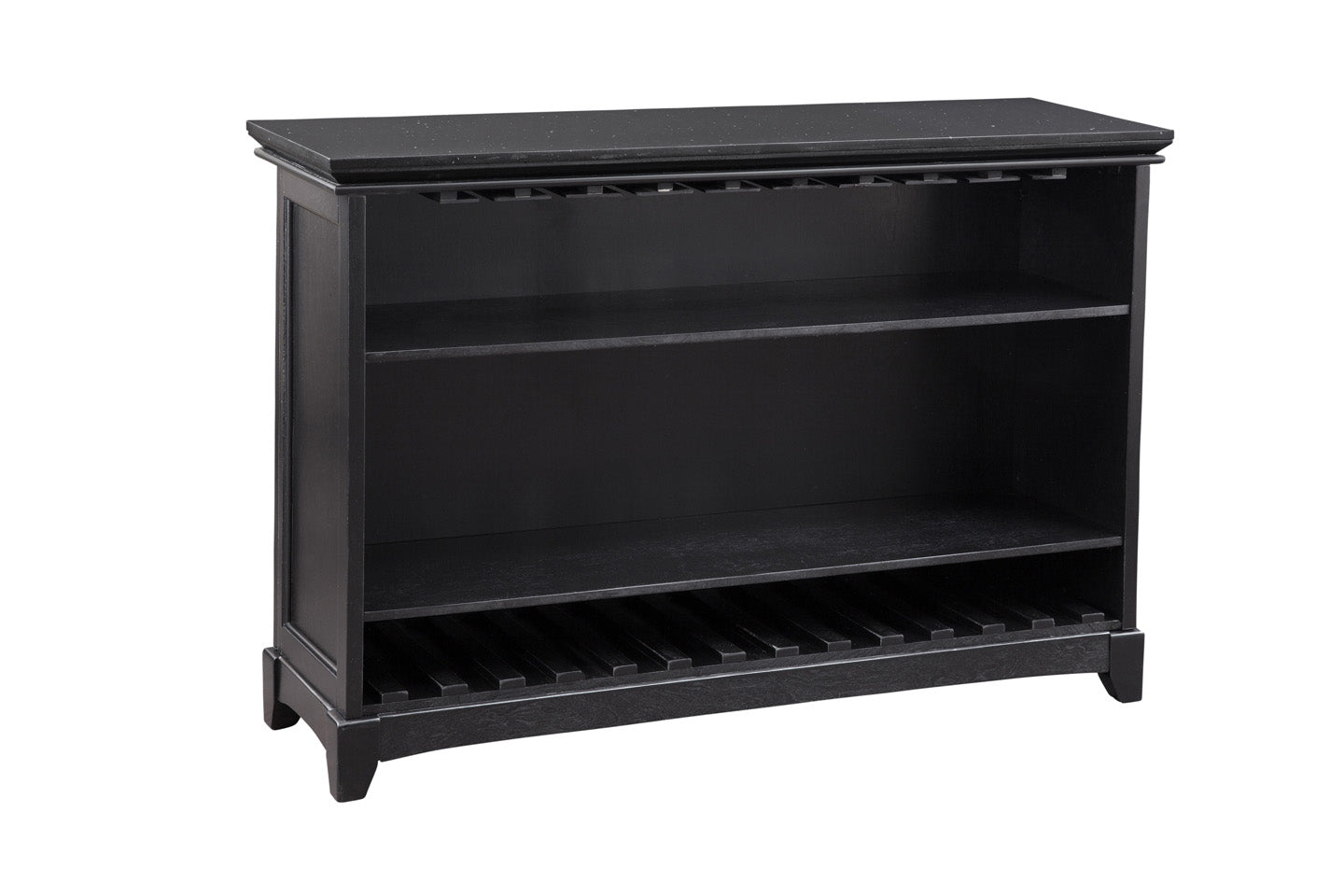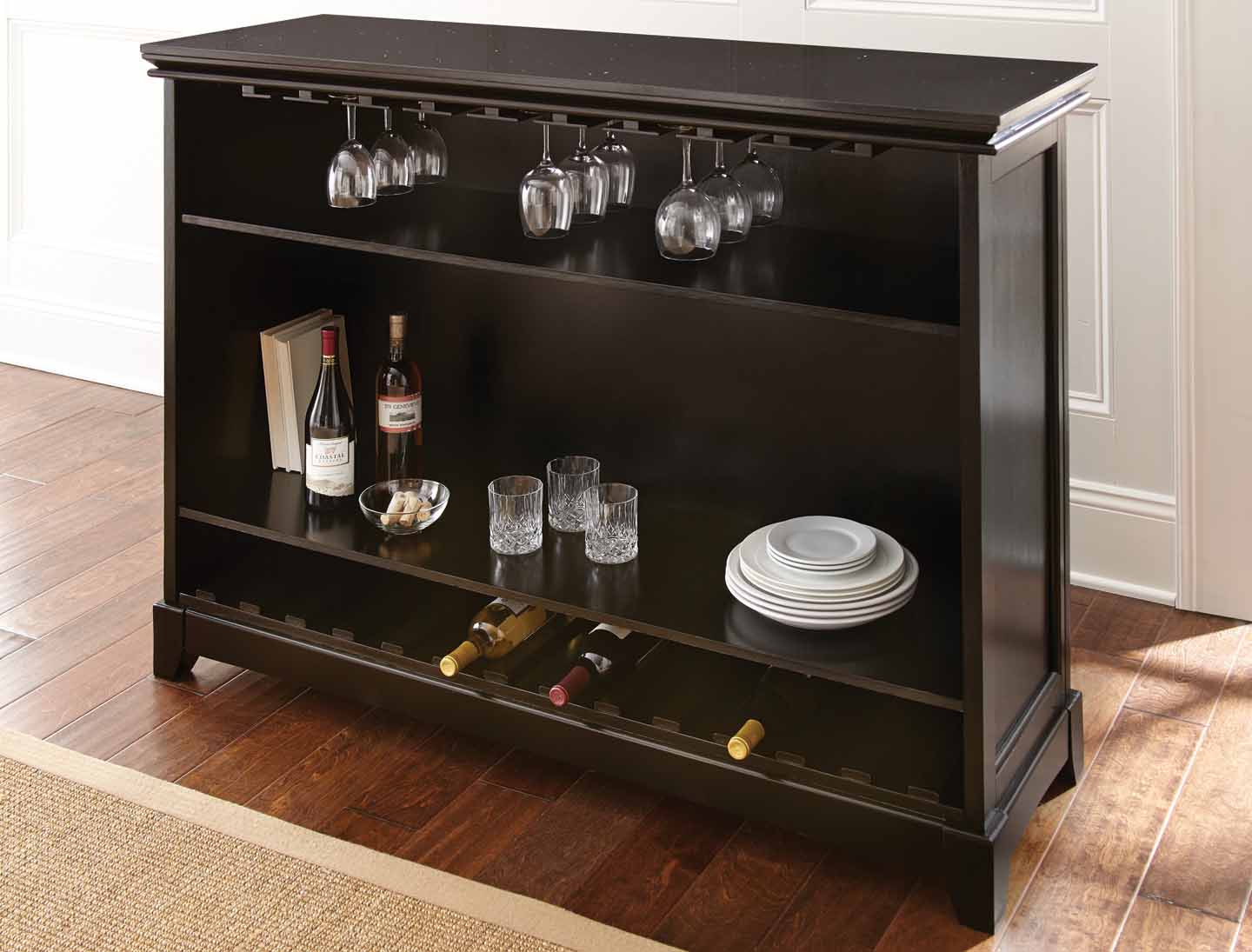 The Garcia bar will be the focal point of your entertaining space. The Garcia bar is constructed of hardwood solids and veneers in a ebony painted finish with a Silverstone composite top that resists scratches, moisture and heat. Storage is plentiful with space for both stemware and bottles. A front footrest is included and makes this a comfortable spot for friends to gather.