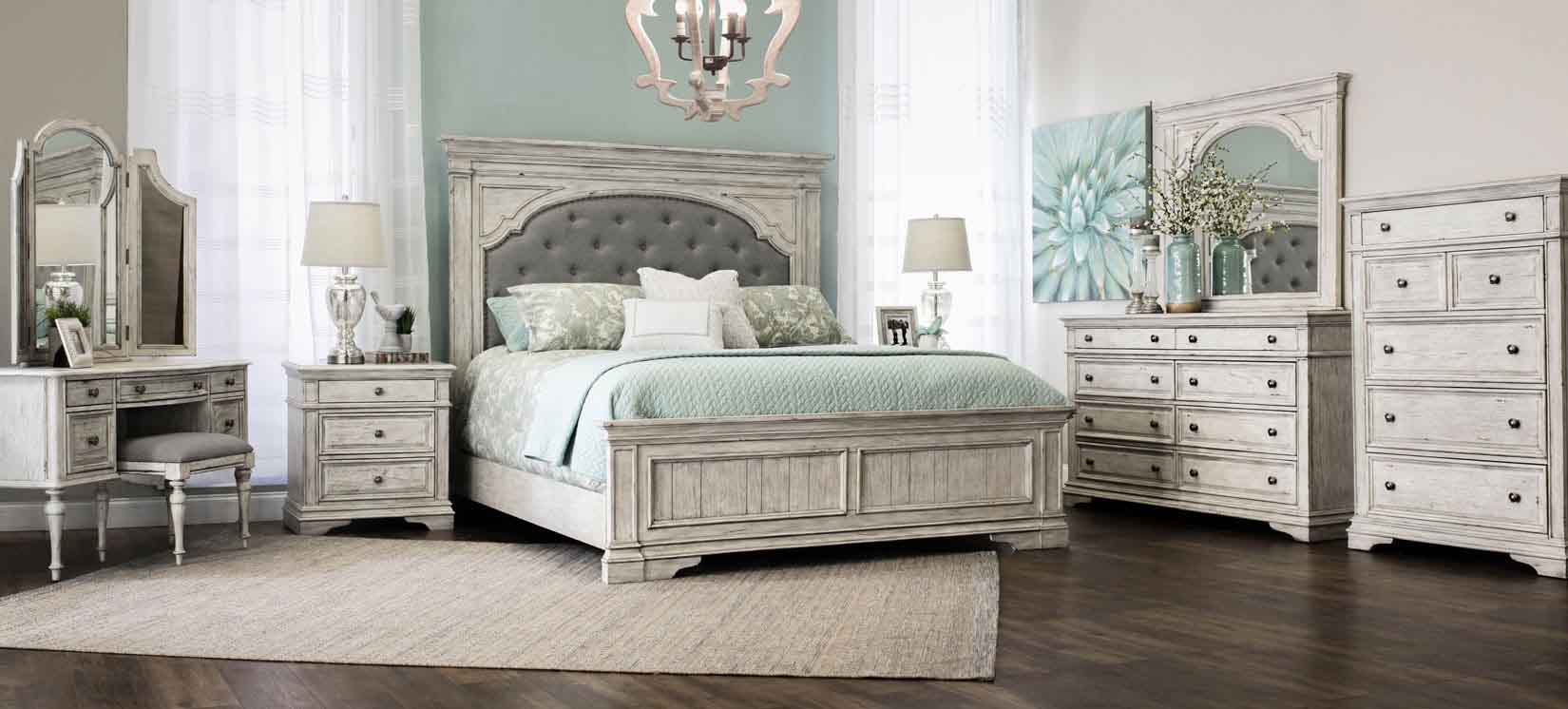 Get the finest in romantic, vintage styling with Highland Park by Steve Silver Company. This bedroom collection features a multi-step, distressed Cathedral White finish that evokes the feeling of time-worn antiques with all the amenities today designs offer (like USB chargers in the nightstand). Refresh your bedroom with the nostalgia of Highland Park.