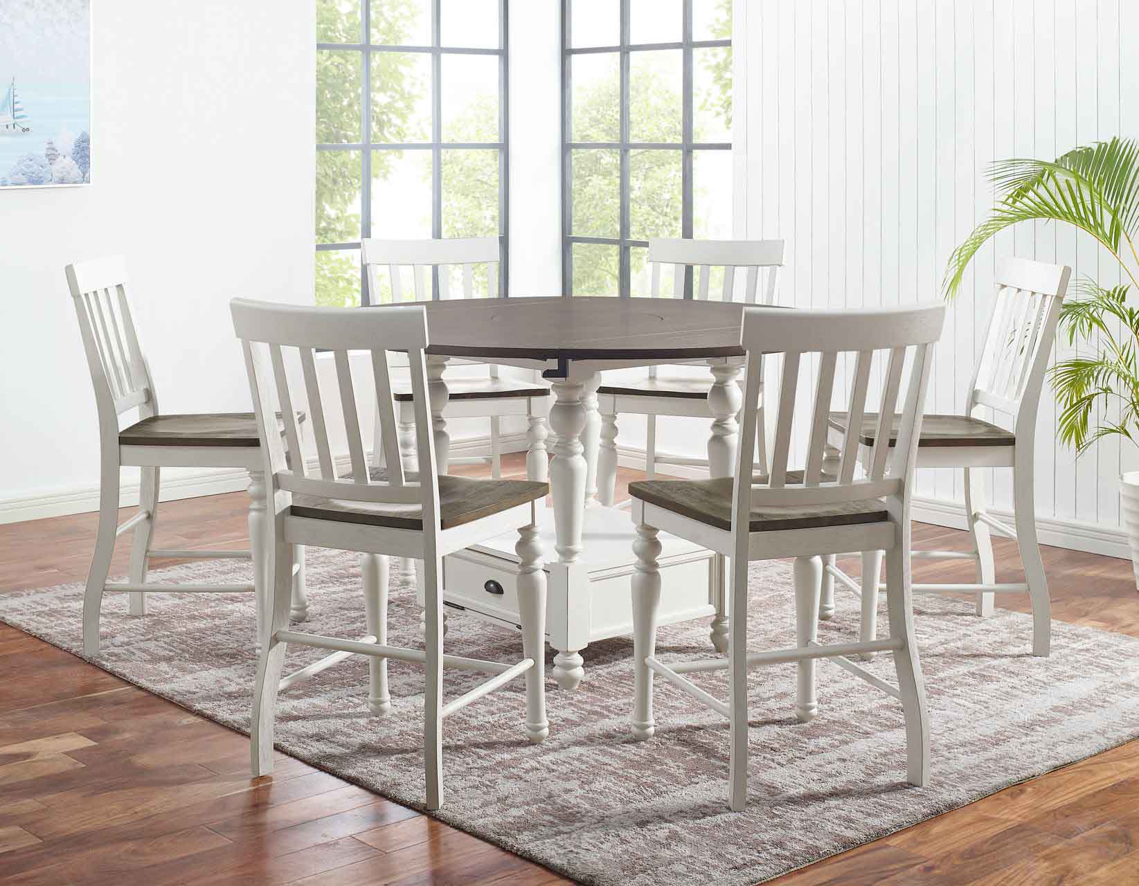 Price includes the two-tone drop-leaf counter height table and 4 two-tone counter height chairs only.