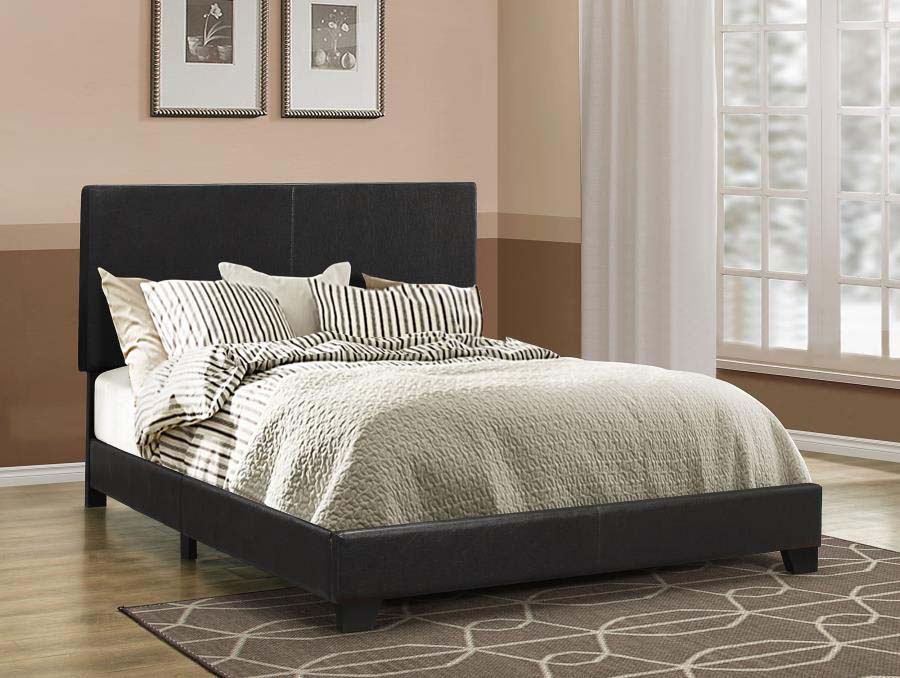 Transform your bedroom with this versatile bed, available in both faux leather and fabric upholstery options to suit any décor. Featuring a padded headboard and sleek design, it offers modern elegance and everyday comfort. Crafted with Asian hardwood, engineered wood, and foam, it ensures durability, while solid wood legs in a black finish add stability and a refined touch.