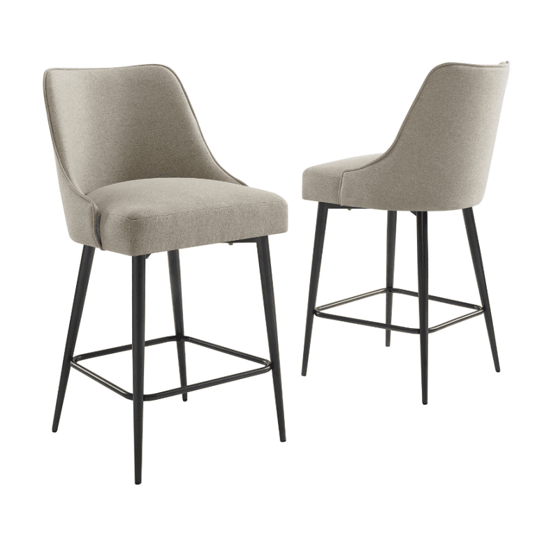 - Counter Chairs constructed of upholstered fabric with iron legs and stretchers for support and comfort