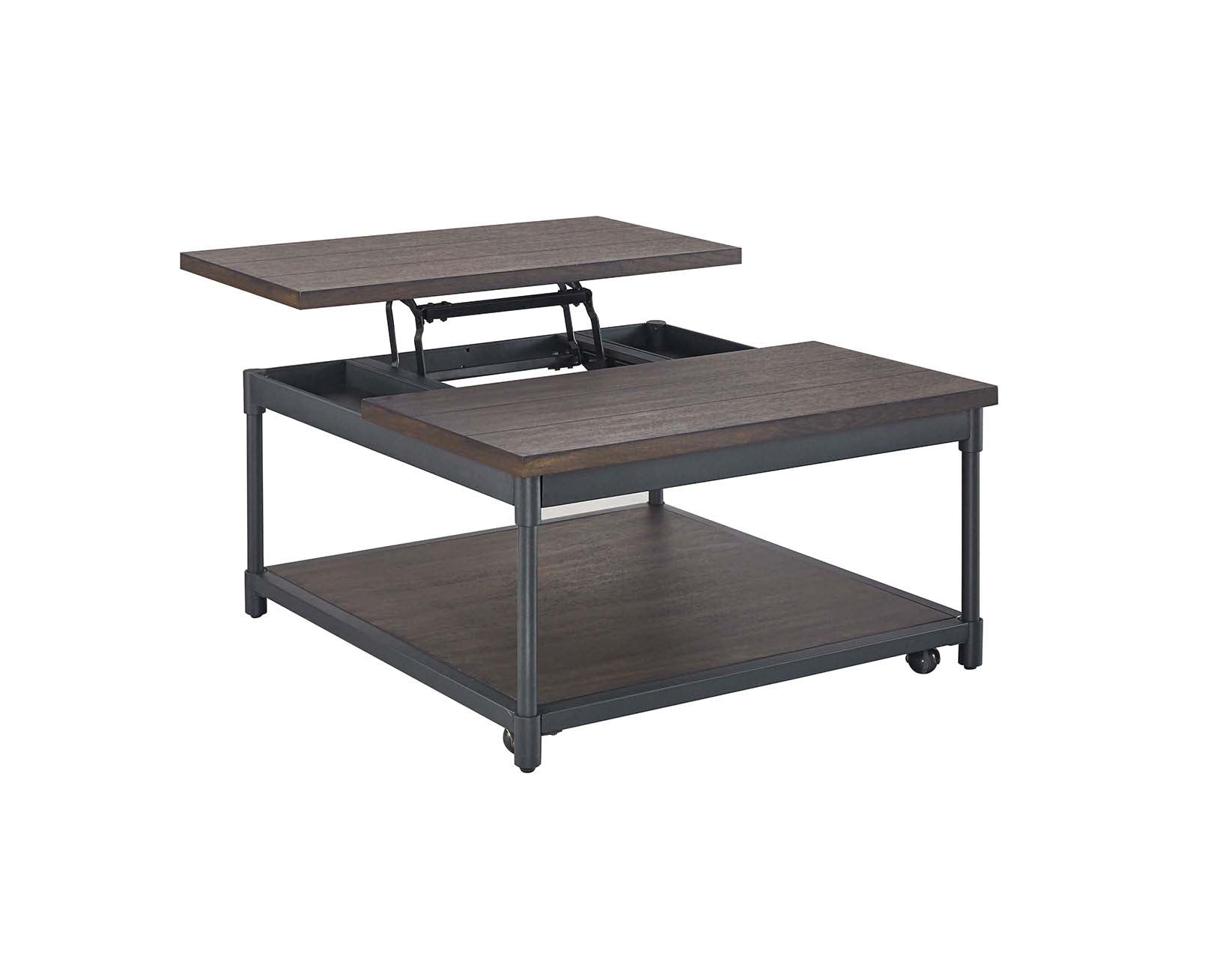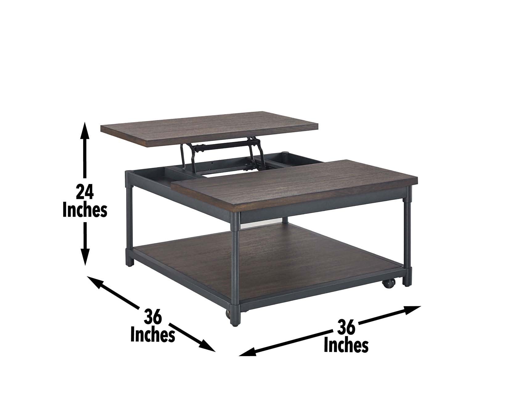 Add some function to your living room tables with this Prescott Lift-Top set. Mixed-media construction blends with rustic design in a set of tables you would not even guess were this fun to use. The Lift-Top Cocktail Table is great for work, school or dining right from your sofa! The Cocktail Table has caster wheels for great mobility with matching End Tables to complete the collection.