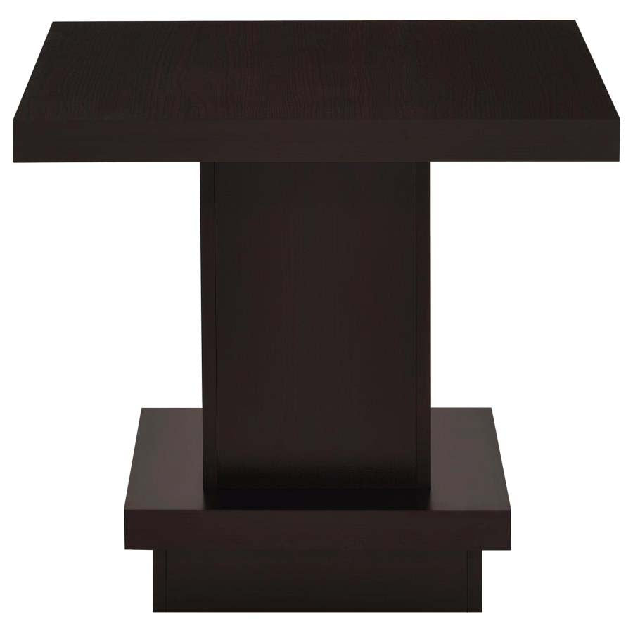 This square end table combines modern design with functional appeal, making it a versatile addition to any space. Constructed from engineered wood and finished with a scratch-resistant laminate veneer, it features a sleek cappuccino finish that exudes contemporary elegance. The bold, tiered silhouette creates a striking look while providing stability. Perfect as an accent table, it offers a spacious surface for decor or essentials, enhancing your living room's overall style.