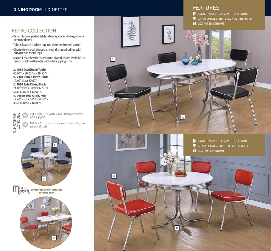 Features: 1950's Retro Inspired Design, Red Padded Seating