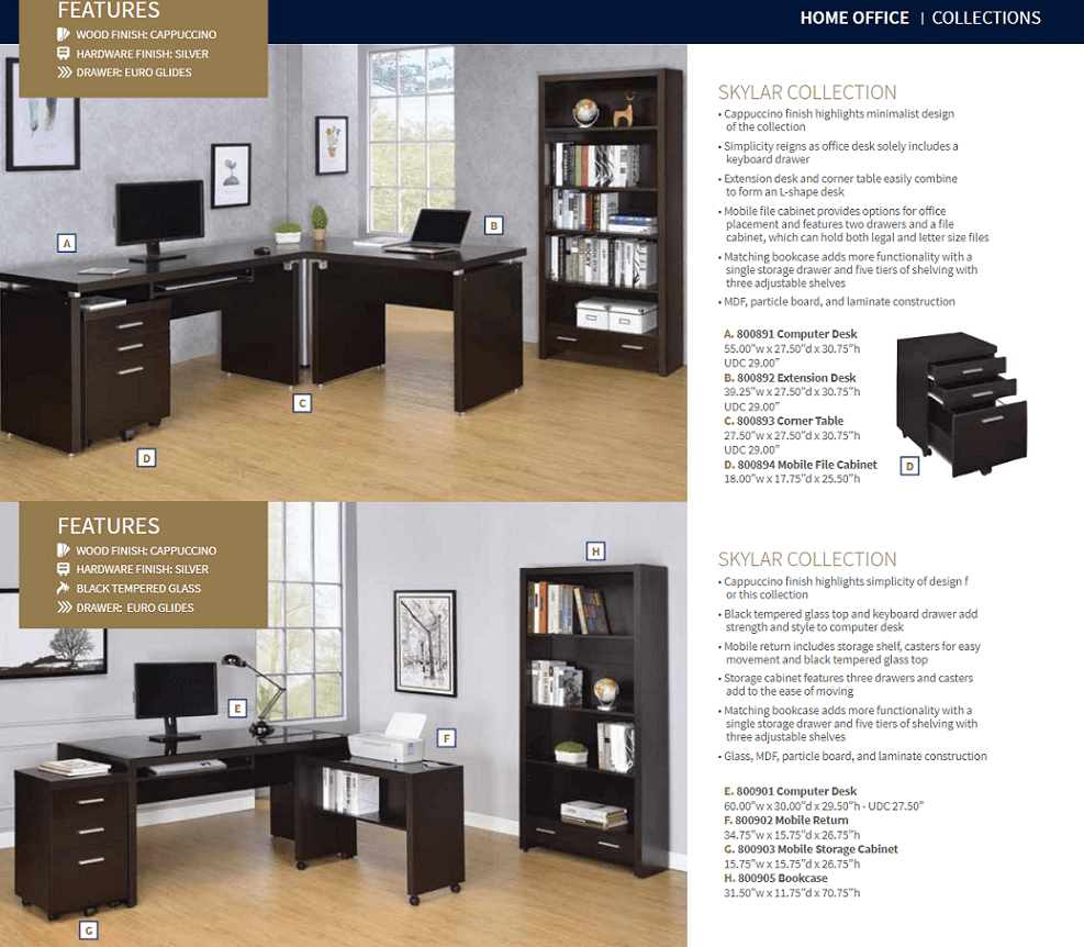 Price includes the 2 piece desk set (computer desk/writing desk/corner table) with file cabinet only.