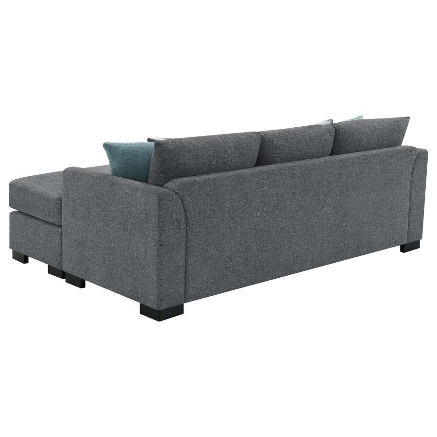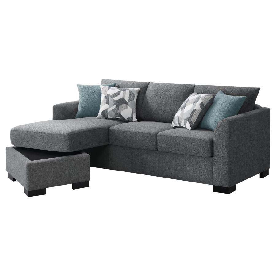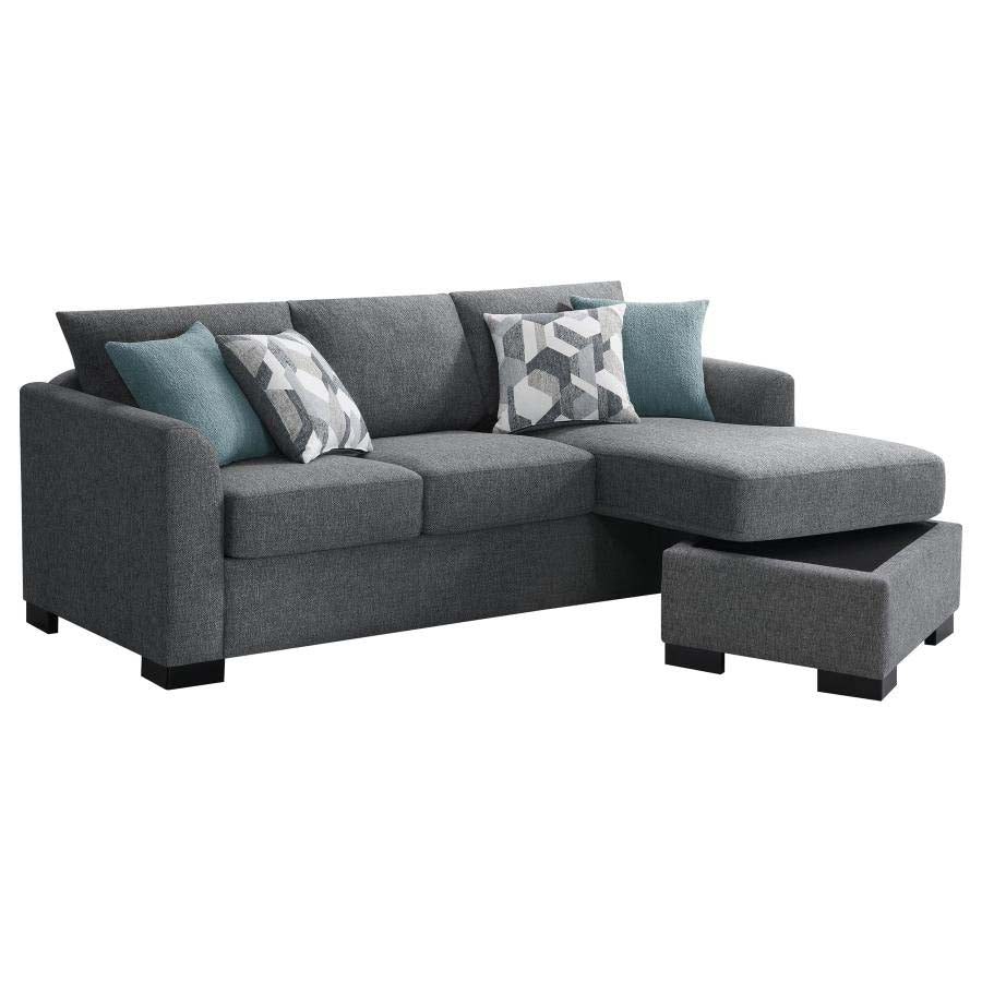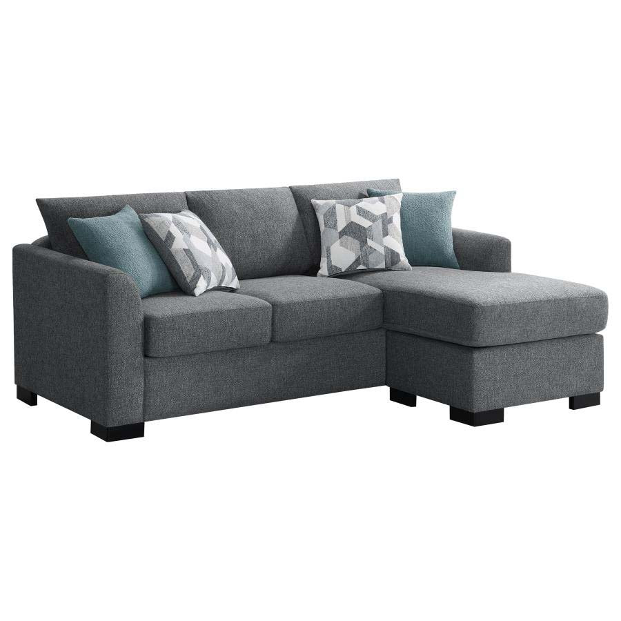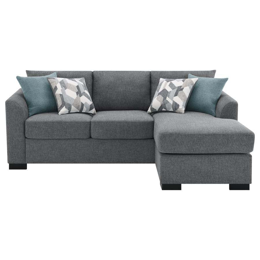 Refresh your living room or den with the contemporary style and easy versatility of a modern sleeper sectional sofa. Lending flexibility to your space, it boasts a chaise lounge for easy relaxation and expands to create a bed when overnight guests arrive. Its soft, inviting upholstery complements foam cushions and spring decking to create excellent support. Gently rounded track arms add a touch of character to a streamlined silhouette and block feet create stability. Four accent pillows add geometric prints to the ensemble, perfect for a contemporary living space.