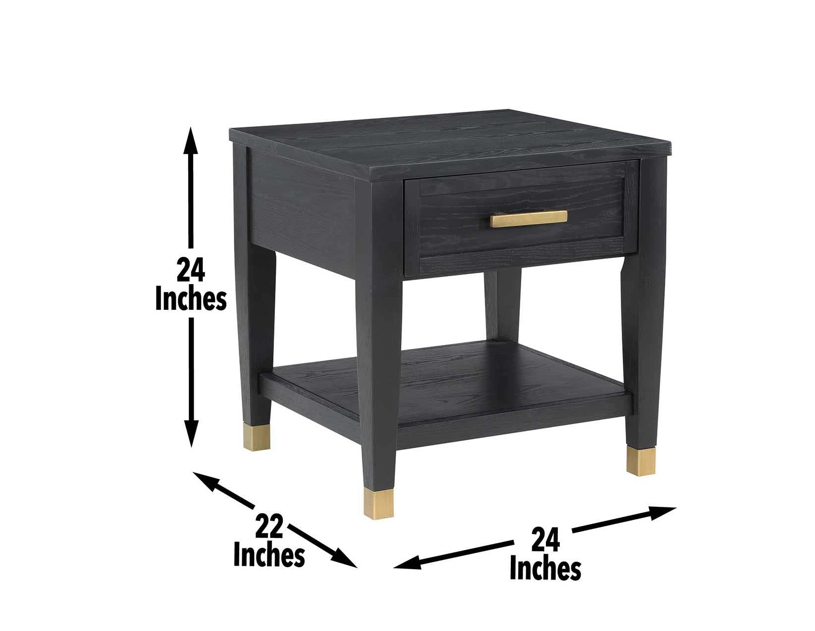 The looks of a modern table set with the function of a Lift-Top Cocktail, the Yves table set pleases everyone. Work or dine from your couch with the effortless lift-top functionality built into the Cocktail Table. The beautiful Rubbed Charcoal finish and brushed brass hardware accents delivers clean modern style in a table set that coordinates wonderfully with the Yves dining collection.